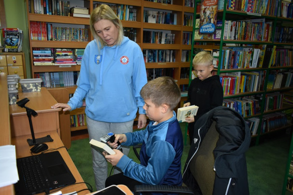 Podczas spotkania w bibliotece, uczniowie wysłuchali fragmentów książki Marty. H. Milewskiej „Po co nam ta szkoła” czytanych przez uczniów naszej szkoły Charlottę McCarthy oraz Wiktora Majewicza. Na koniec wszyscy mogli na chwilę zamienić się w bibliotekarza i samodzielnie wypożyczyć lekturę „Dzieci z Bullerbyn”.