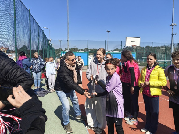 Drużyna dziewcząt starszych w składzie: Dinara Aliieva kl.8a, Michalina Motylak kl.7a, Kaja Narożna kl.7a, Zofia Puszakowska kl.7b, Dobrawa Skumiał kl.7a, Valeriia Synkova kl.7b oraz Hanna Szcześniak kl.7a zdobyła brązowy medal. To naprawdę świetny wynik przy tak dużej konkurencji.