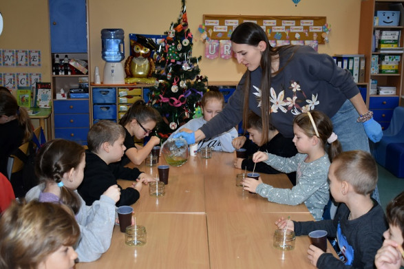5 grudnia nasi najmłodsi uczniowie obchodzili mikołajki. W tym wyjątkowym dniu wszyscy zamienili się w pomocników Świętego Mikołaja, zakładając czerwone czapeczki i wprowadzając do szkoły świąteczną atmosferę. Od rana dzieci z niecierpliwością wypatrywały, czy Mikołaj pojawi się w ich klasie i – co najważniejsze – jakie niespodzianki dla nich przygotował. Kiedy wreszcie Mikołaj przekroczył próg sali, przywitały go radosnym śpiewem. Zachwycony tak ciepłym przyjęciem, Mikołaj obdarował wszystkie dzieci prezentami. Dziękujemy Ci, kochany Mikołaju, że jak zawsze o nas pamiętałeś! Dziękujemy za prezenty i za wprowadzenie nas w wyjątkowy czas radosnego oczekiwania na Święta Bożego Narodzenia!
