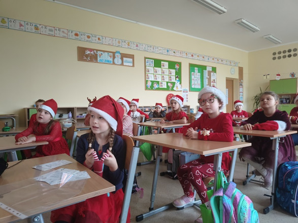 5 grudnia nasi najmłodsi uczniowie obchodzili mikołajki. W tym wyjątkowym dniu wszyscy zamienili się w pomocników Świętego Mikołaja, zakładając czerwone czapeczki i wprowadzając do szkoły świąteczną atmosferę. Od rana dzieci z niecierpliwością wypatrywały, czy Mikołaj pojawi się w ich klasie i – co najważniejsze – jakie niespodzianki dla nich przygotował. Kiedy wreszcie Mikołaj przekroczył próg sali, przywitały go radosnym śpiewem. Zachwycony tak ciepłym przyjęciem, Mikołaj obdarował wszystkie dzieci prezentami. Dziękujemy Ci, kochany Mikołaju, że jak zawsze o nas pamiętałeś! Dziękujemy za prezenty i za wprowadzenie nas w wyjątkowy czas radosnego oczekiwania na Święta Bożego Narodzenia!