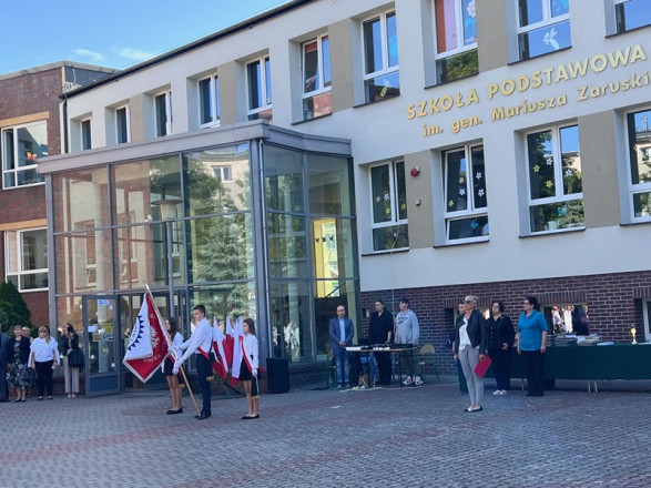 Rozpoczęcie roku szkolnego 2024/2025 odbyło się 2. września o godz.9.00 na boisku przed budynkiem szkoły. Zgodnie z naszą długoletnią tradycją uroczystość rozpoczęła się od wprowadzenia sztandaru szkoły oraz odśpiewania hymnu narodowego. Następnie głos zabrała Pani Dyrektor Elżbieta Mey – Wysocka, która powitała uczniów, ich rodziców i grono pedagogiczne. Szczególnie serdecznie zostali przywitani pierwszoklasiści, którzy po raz pierwszy przekroczyli progi naszej szkoły. Pani Dyrektor życzyła uczniom wielu sukcesów w nauce oraz ciągłego rozwijania swoich zainteresowań. Podkreśliła znaczenie edukacji w kształtowaniu przyszłości młodego pokolenia oraz znaczącą rolę, jaka pełnią nauczyciele i rodzice w tym procesie.