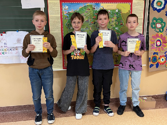 Nasi najmłodsi uczniowie z chęcią biorą udział w różnorodnych konkursach, w których mogą wykazać się wiedzą i umiejętnościami. Do Ogólnopolskiego Konkursu „Orzeł Edukacji Wczesnoszkolnej” przystąpiło w tym roku w sesji wiosennej 48 osób z klas 1-3, natomiast do „Orła Matematycznego” 14 osób z klas 3. Miło nam poinformować, że aż 6 uczniów otrzymało tytuł laureata, wykazując się szeroką wiedzą ogólną: